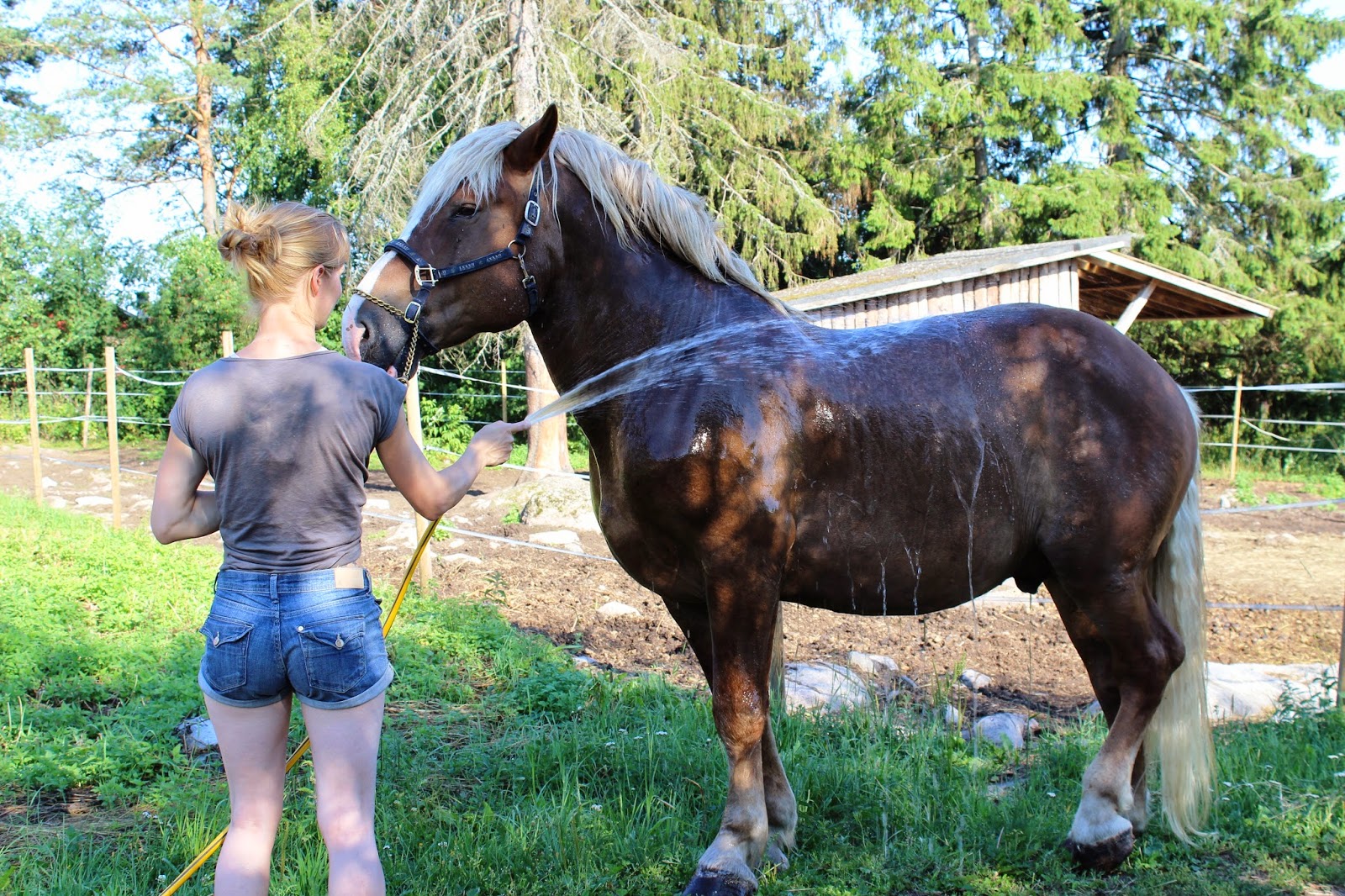 Onneksi sain myös seurata kun Vip ja Eida saivat osakseen saman kohtelun, niin en ollut ihan ainoa kärsijä. Niitä suomenhevosia ei pesty kun niillä on päällä semmoset ihmeen jumpsuitit, niin ei kuulemma haluttu kastella niitä turhaan.